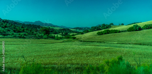 Greenery, Mountains, Farms and Fields on the outskirts of Ronda Spain, Europe