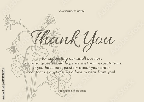 Greeting card template design, thank you card with floral background, thank you card. day 197