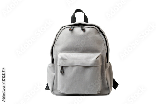 Grey Backpack Modern Design Soft Lighting Studio Shot for Outdoor Activities