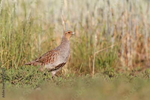 Grey partridge among the wheat field/Grey partridge