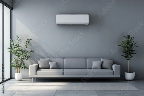 air conditioner, modern, living room, home, interior, couch, sofa, contemporary, grey, wall, window, light, minimalist, clean, comfortable, stylish, elegant, simple, cosy, relax, chill, air conditioning, furniture, plant, decoration, room, house, apartment, home decor, comfort, style, interior design, living space, minimalism