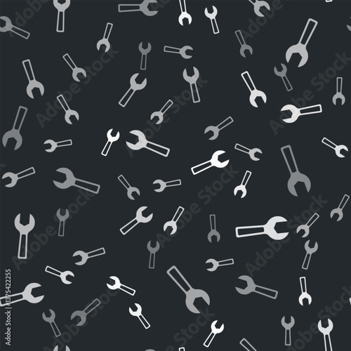 Grey Wrench spanner icon isolated seamless pattern on black background. Vector