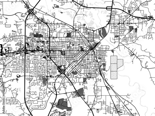 Greyscale vector city map of Hattiesburg Mississippi in the United States of America with with water, fields and parks, and roads on a white background.