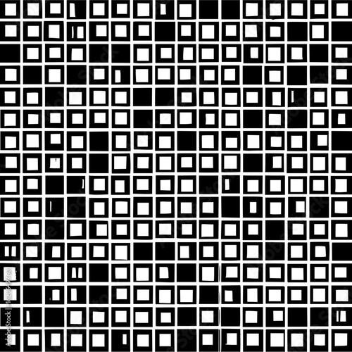 grid, square, black, white, pattern, abstract, design, visual, element, texture, monochrome, geometric, tile, arrangement, contrast, filled, empty, regular, irregular, matrix, structure, graphic, art, illustration, background, wallpaper, surface, decorative, motif, shape, form, composition, layout, visually, striking, with