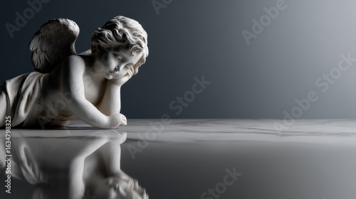angel, statue, grief, marble, left, white, small, texture, detail, grieved, position, environment, light, shadow, emotion, stillness