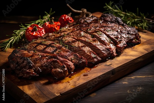grilled, beef, laid, out, wooden, preparation, meat, pepper, steak, rosemary, board, bar-b-q, fire, flames, horizontal, juicy, menu, muscle, product, slice, garnish, grocery, vegetable, fillet, knife, raw, roasted, salt, sirloin, tenderloin, thyme, white, beefsteak, black, butcher, chop, cutting, dark, meal, red, wood, background, diet, dinner, food, fresh, pork meat