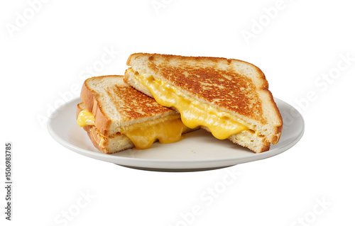 Grilled Cheese Sandwich Cut in Half on Plate Isolated PNG