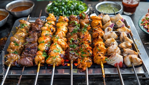 receipe, cookery, meat, vegetable, cilantro, unhealthy, lunch, scorching, kebob, dinner, coal, epicure, food, hot, onion, grill, cooking, meal, summer, delicious, bar-b-q, parsley, skewer, fire, bar-b-q, picnic, sauce, roasted, marinade, party, tasty, beef, skewer, grilled, chicken, herb, dish, spice, eatery, traditional