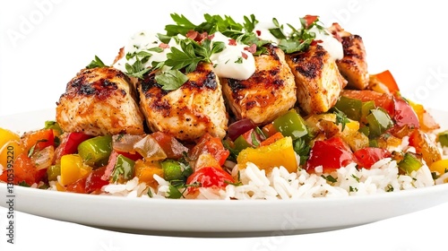 chicken, rice, grilled, vegetable, herb, meal, food, cookery, garnish, dish, fresh, colourful, plate, healthy, cooking, lunch, dinner, parsley, bell pepper, onion, tomatoes, spice, favor, protein, culinary, presentation, ingredient, tasty, delicious, nourishment, dining, receipe, banquet, food preparation, grilled chicken, white rice