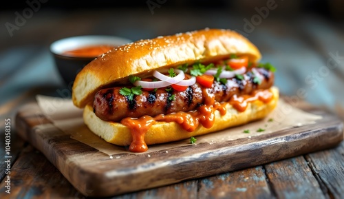 Grilled Choripan Sausage Sandwich with Onions and Cilantro (Bolivian Cuisine)