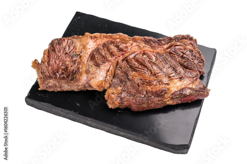 Grilled Chuck eye roll steak, marbled beef meat isolated on white background