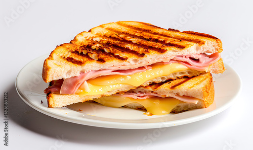 Grilled ham and cheese sandwich with melted cheese