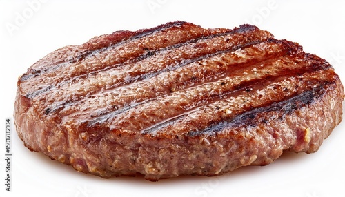 Grilled Hamburger Meat Isolated on White Background – Full Depth of Field
