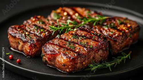 Grilled Lamb Chops with Herbs and Spices on Grey Background