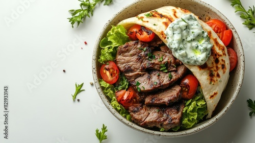 meat, salad, vegetable, sauce, bowl, lettuce, tomatoes, herb, pita, grilled, cookery, fresh, tasty, meal, healthy, garnish, cooking, dining, food, dish, favor, ingredient, presentation, culinary, nourishment, protein, green, pepper, onion, spice, seasoning, platter, eatery, epicure, receipe, lunch, dinner, snack, appetising, brunch, bar-b-q, mediterranean, zesty, creamy, texture, colours, vibrant, serving