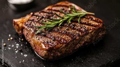 steak, ribeye, grilled, meat, food, delicious, dinner, cookery, beef, epicure, eatery, cook, roasted, herb, rosemary, pepper, salt, seasoning, favor, appetising, juicy, tender, protein, culinary, dark, brown, black, plate, stone, meal, eating, photo, tasty, lunch, receipe