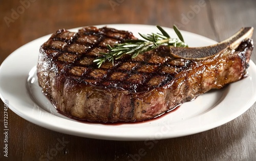 steak, ribeye, grilled, meat, food, dinner, cookery, delicious, epicure, eatery, beef, red meat, protein, rosemary, herb, sauce, appetising, culinary, gastronomy, food photography, high-quality, brown, juicy, closeup, plate, white plate, wooden table, texture, dark background, rich, savoury, flavorful, meal, main course, eating, cook, meat dish