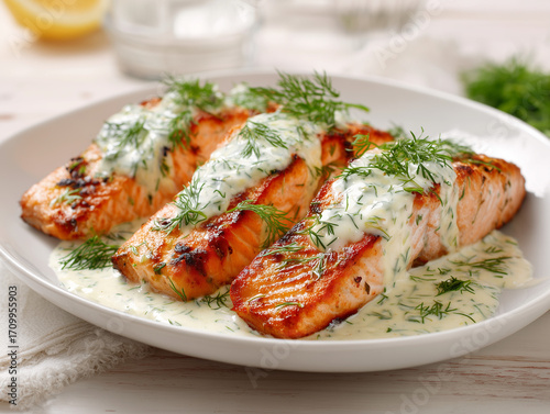 dill, sauce, fish, seafood, food and drink, food, crockery, meal, dinner, lunch, healthy eating, protein, epicure, eatery, ready-to-eat, table, eating, cooked, freshness, no people, indoor, closeup, photo