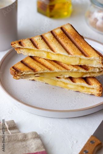 Grilled sandwiches with cheese. Vegetarian food. Breakfast.