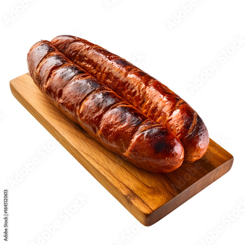 Grilled Sausage with Rosemary on Wooden Board on a Transparent Background