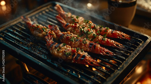 shrimp, grilling, skewer, spice, herb, night, friends, laughter, food, bar-b-q, cookout, warmth, flavorful, cookery, starry sky, summer, social, culinary, cooking, enjoyment, feast, delicious, aroma, party, entertainment, relaxation, celebration, summer, picnic, meal, epicure, fresh, preparation, catering, charred, savoury