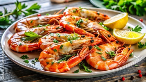 Grilled Shrimps with Lemon and Herbs - A Delicious Seafood Dish for Culinary Enthusiasts