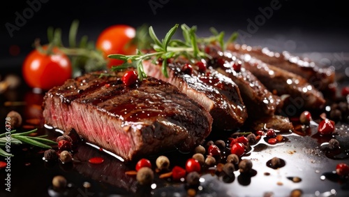 beef, grilled, steak, teriyaki, black pepper, meat dish, fusion, fried, juicy, tender, spicey, glazed, appetising, fragrant, main course, culinary arts, gastronomy, protein, marbling, roasting, texture, taste, aroma, soy sauce, marinade, photogenic, bar-b-q, haute cuisine, hearty, alimentary, epicure, exquisite, festive, seasonal