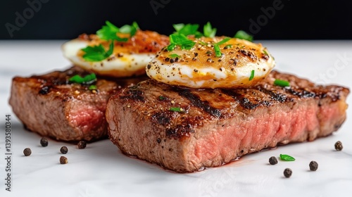 Grilled steak with fried eggs