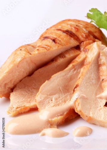 turkey, chicken, chicken breast, slice, grilled, meat, bar-b-q, bar-b-q, roasted, salad dressing, sauce, condiment, tasty, epicure, food, snack, lunch, accessing, closeup