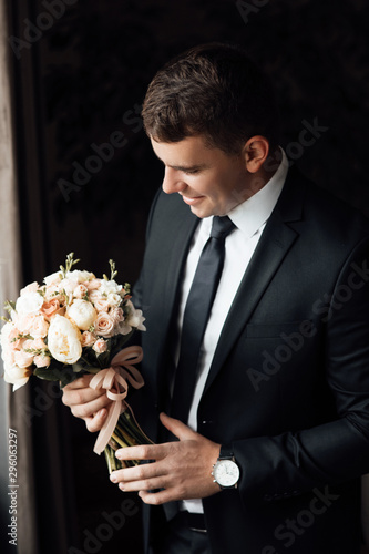 bouquet, detail, morning, love, cheerful, emotion, shirt, attractive, boy, guy, style, clothing, closeup, event, sexy, 1, getting, joy, romantic, gentleman, lifestyle, people, holiday, photogenic, hand, posing, family, stylish, home, room, clothes, male, suit, white, elegant, man, young, wedding, fashion, luxury, person, black, portrait, marriage, groom, celebration, happy, elegance, day, husband