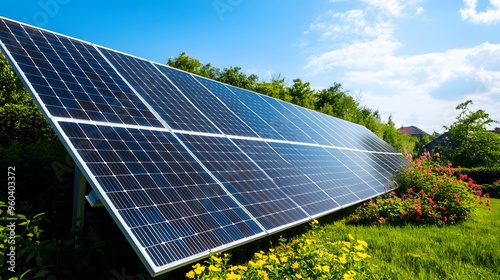 solar, array, ground, field, lush, green, grass, wildflower, clear, blue, sky, cloud, gleam, sunlight, sustainable, energy, picturesque, environmentally friendly, technology, nature, hugs, renewable, resource, beauty, protection, planet, future, generation, harmony, clean, power, innovation, environment, conservation, responsibility, sustainability, progress, hope, life, thrive, vitality, natural, captivate, serene, development