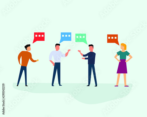 Group of people or male and female talking on cyan background. Vector illustration flat design.