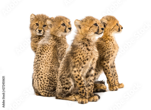 cheetah, cat, baby animal, felino, big cat, animal, sitting, isolated on white, white background, wildcat, carnivore, mammal, wild animal, wild, wildlife, vertebrate, studio shot, nobody, no people, cheetah, cut-out, isolated, white, young, childhood, family, brother, brotherhood, sister, sisterhood, protection, human relationships, protect, group, many, together, spotted, endangered