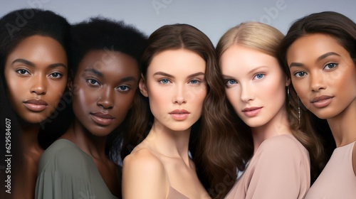 group of Beautiful female models with beautiful skincare from a diverse ethnicity