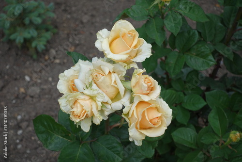 Group of beige flowers of roses in mid June