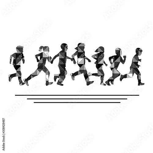 play, children, fitness, athlete, health, friends, sport, fun, little, together, young, childhood, abstract, background, jogging, exercise, row, white, black, striped, triangle, geometrical, geometry, dot, silhouette, people, girl, group, boy, pattern, illustration, run, marathon, design, logotype, happy, sport, race, woman, runner, children, healthy, human, speed, colourful, competition, halftone, forward, sprint, leader