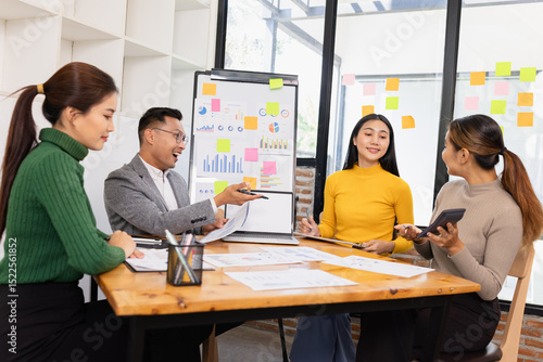 Group of business people working together with dashboard analysis and data management in conference room, Corporate business and dashboard to presentation concept.