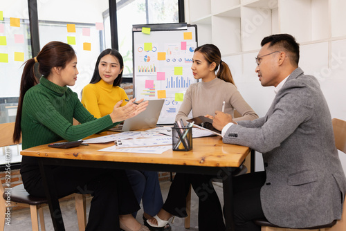 Group of business people working together with dashboard analysis and data management in conference room, Corporate business and dashboard to presentation concept.