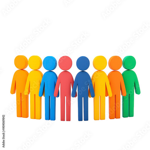 group of colorful stick figures stands together, symbolizing diversity and unity. figures are arranged in row, each in different vibrant color, representing inclusivity and teamwork