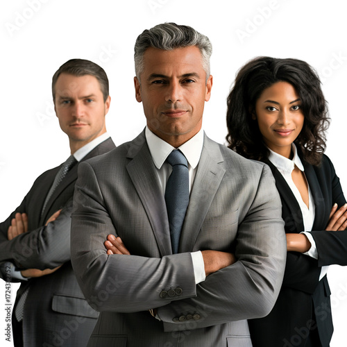 Group of Confident Business Professionals in Suits Standing with Arms Crossed
