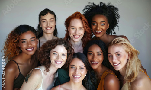 Group of diverse multiracial and multi ethnic smiling woman posing in a studio