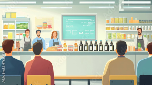training, workshop, employee, kitchen, cooking, hygiene, teamwork, health, regulation, sanitation, classroom, learning, presentation, chef, ingredient, cleanliness, preparation, education, professional, nourishment, service, compliance, collaboration, demonstration, interactive