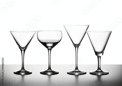 Group of empty martini glass isolated on white background in high definition