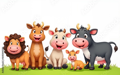 Group of farm cartoon animals. Vector illustration of funny happy animals. High quality