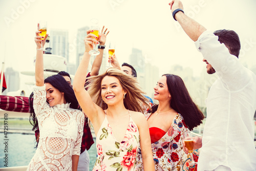 Group of friends making party on a yacht in Dubai