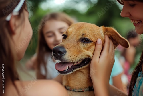 dog, children, petting, park, summer, happy, friends, friendship, pet, animal, care, love, fun, joy, nature, outdoors, childhood, lifestyle, togetherness, playful, cheerful, children, girl, happiness, canino, mammal, portrait, domestic, companion, bonding, affection, playing, day