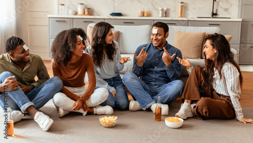 multiracial, young, people, friends, home, guessing, joy, floor, diversity, entertainment, communication, amusement, interaction, casual attire, cheerful, party game, teamwork, indoor, laughter, competition, strategy, facial expression, enjoyment, sitting, cosy, room, contemporary, leisure, bond, friendship, man, woman, snack, beverage, casual clothes, diverse, comfort, engaged, engagement, international, fun