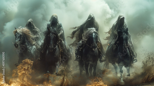 group of horsemen of the Apocalypse, simple and clear style.generative ai