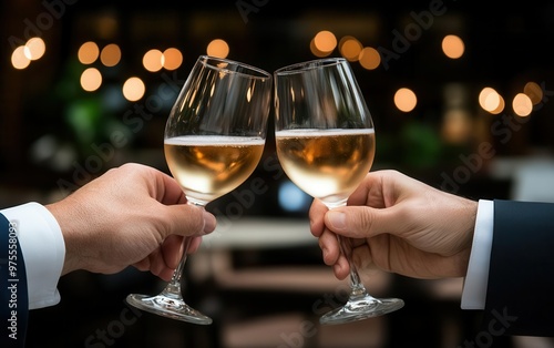 Group of investors toasting to a new franchise deal, celebratory atmosphere, highend business setting, success and partnership in investment