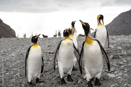 Group of king penguins in Fortuna Bay and South Georgia, Antarctica